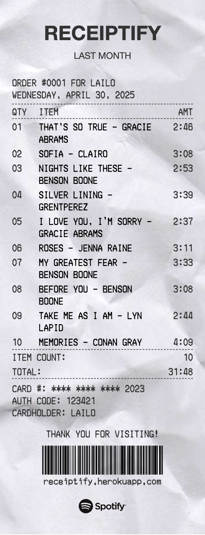 april 25 receipt: