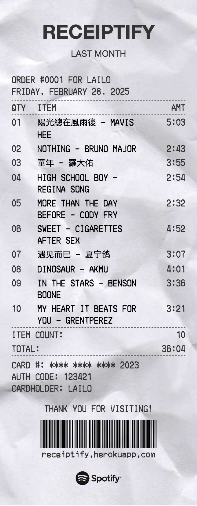 feb 25 receipt: