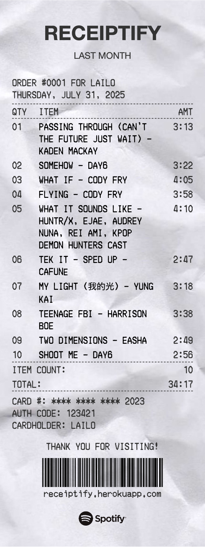july 25 receipt: